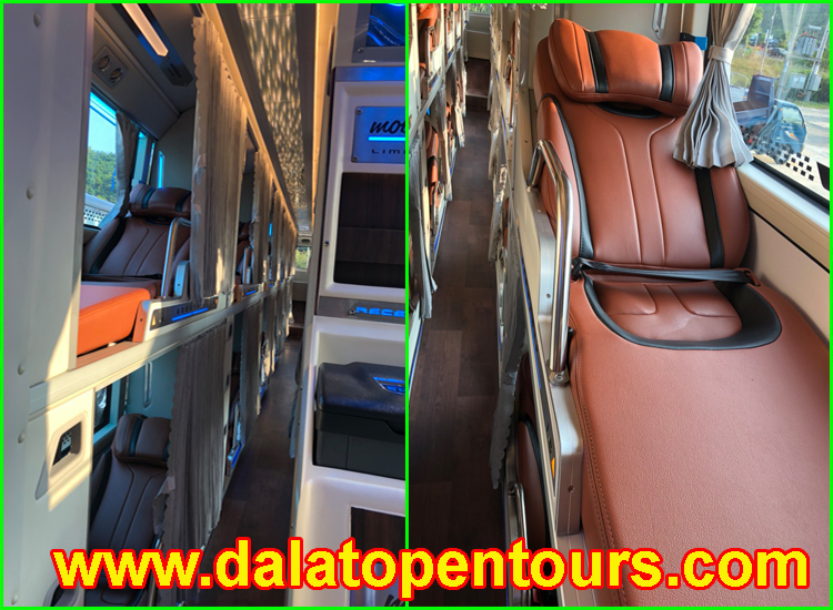 1. DIRECT BUS FROM DALAT to HOI AN ( Temporary Stop) Duration: 13 hours. Deaparture: 17:00 (05:00 PM) Arrive: 06:00 AM Distance: 670 Km Pick up time and deparure from our office at 17:00 (05:00 PM) Departure from: DALAT OPEN TOURS ~ C 9 Tran Le Street, Dalat City Arrival at: Cooperate office in Hoi An ~ 105 Ton Duc Thang Street, Hoi An City Bus type: normal sleeper bus 40 seater. Pick up time: 16:00 (04:00 PM) we pick up from hotel withi 5 km from Dalat City center by shuttle van. Rest stop: Quy Nhon for dinner 30 minutes after 11:00 PM Please have your meal before take the bus or prepare some snack for you. Price: Temporary Stop Please contact us at least 24 hours before departure time to check '' Seat availability , pick up time from your location, & get the seat number/location " Office & Online working time : 07:00 AM to 09:00 PM (UTC+7) Contact us at: Email: This email address is being protected from spambots. You need JavaScript enabled to view it. WhatsApp/Zalo/ Viber: +84918313696 Line ID: dalatopentours WeChat ID ( 微信号 ) yuenandaleluyou Booking Office: DALAT OPEN TOURS Address: 24 Phan Boi Chau Street, Dalat City Vietnam Booking process: After checking the seat availability, we will hold the seat you select in normaly in 1 hour or with the commitment time. You can send us an email to request an online payment link or pay directly at our webiste by click to the button "book your ticket" and follows the process to pay. Once payment has been received, the bus ticket will be issued immediately, and therefore cannot be refunded. Confirmation will be sent to you within 24 hours. Please note that all online credit transactions are subject to a 3% surcharge with all cards . What passengers need to do before departure: - Passenger are recommended to be at the meeting point for pick up at least 45 minutes before departure. - Each passenger can carry on board a free baggage of maximum weight of 15 kg. - Ticket refund and change should be made before departure at least 24 hours. in case of group tickets, only ticket refund is permitted and should be made at least 24 hours before departure. refund and change fare are applied. - Passengers are considered as proper e- Ticket owners with valid Boarding Pass and travel/ identification document such as ID card with photo, receipt, bus ticket or confirmation of services by email. - Bus company does not check bags over its routes. There is no liability for unchecked baggage and personal belongings. Customers should keep their personal belongings, especially valuables such as cell phones, tablets, laptops and medications in their possession at all times. Special Notice: 2. Indirect trip: Limousine van & sleeper bus : Dalat - Nha Trang - Hoi An ( Temporay Stop) Duration on Limousin Van and Sleeper Bus: total 14 hours. Deaparture: Dalat to Nha Trang by vip limousine van: can be select departure time from 07:30 AM to 15:00 PM. Nha Trang to Hoi An: VIP sleeper bus departure at 20:00 PM , arrive in Hoi An at 06:00 AM. Total price: Arrive: 06:30 AM Distance: 670 Km Pick up time from 45 minutes before depature time within 5 km from Dalat City Center. Departure from: DALAT OPEN TOURS ~ C9 Tran Le Street, Dalat City Arrival at: Co-operate office HOI AN ~ 35 Thai Phien Street, Hoi An City Vehicle type: VIP limousin van & sleeper bus, with wifi & toilet. Pick up time: from 45 minutes before departure time we pick up from your hotel by mini van to our office depending on your hotel location. Note: the indirect trip is arrange for passenger to have time for dinner and resting during the long trip between Dalat and Hoi An. Please contact us at least 24 hours before departure time to check '' Seat availability , pick up time from your location, & get the seat number/location " Office & Online working time : 07:00 AM to 09:00 PM (UTC+7) Booking process: After checking the seat availability, we will hold the seat you select in normaly in 1 hour or with the commitment time. You can send us an email to request an online payment link or pay directly at our webiste by click to the button "book your ticket" and follows the process to pay. Once payment has been received, the bus ticket will be issued immediately, and therefore cannot be refunded. Confirmation will be sent to you within 24 hours. Please note that all online credit transactions are subject to a 3% surcharge with all cards . What passengers need to do before departure: - Passenger are recommended to be at the meeting point for pick up at least 45 minutes before departure. - Each passenger can carry on board a free baggage of maximum weight of 20kg. - Ticket refund and change should be made before departure at least 24 hours. in case of group tickets, only ticket refund is permitted and should be made at least 24 hours before departure. refund and change fare are applied. - Passengers are considered as proper e- Ticket owners with valid Boarding Pass and travel/ identification document such as ID card with photo, receipt, bus ticket or confirmation of services by email. - Bus company does not check bags over its routes. There is no liability for unchecked baggage and personal belongings. Customers should keep their personal belongings, especially valuables such as cell phones, tablets, laptops and medications in their possession at all times. Contact us at: Email: This email address is being protected from spambots. You need JavaScript enabled to view it. WhatsApp/Zalo/ Viber: +84918313696 Line ID: dalatopentours WeChat ID ( 微信号 ) yuenandaleluyou Booking Office: DALAT OPEN TOURS Address: 24 Phan Boi Chau Street, Dalat City Vietnam Special Notice: Bus photo: Big sleeper coach: Contact us at: Email: This email address is being protected from spambots. You need JavaScript enabled to view it. WhatsApp/Zalo/ Viber: +84918313696 Line ID: dalatopentours WeChat ID ( 微信号 ) yuenandaleluyou Booking Office: DALAT OPENTOURS, Address: 24 Phan Boi Chau Street, Dalat City Vietnam Tel: +842633755536 Departur